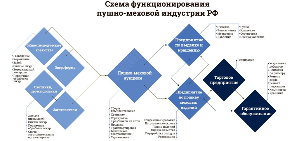 На протяжении веков мех играл важную роль в формировании самосознания человека, его культуры и социальных норм – меховая индустрия носила глобальный характер за много сотен лет до изобретения самого слова «глобализация». В наше время меховое производство представляет собой сеть звероферм, предприятий малого и среднего бизнеса, аукционных домов, пушных брокеров, закупщиков, скорняков, компаний по выделке и крашению меха, торговых и промышленных организаций.