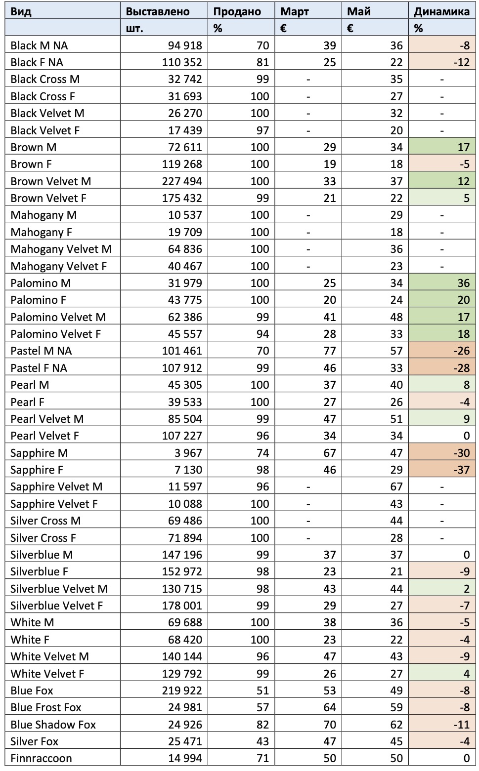 «На большинство видов норки уровень цен стал выгодным для производителей после нескольких трудных лет. После успешного аукциона по норке продажи на аукционе по лисице были скромными для всех предложенных видов. Некоторые лоты остались непроданными, чтобы защитить уровень цен, а процент продаж остается низким», — говорит Маркус Готтхардт, управляющий директор Saga Furs.