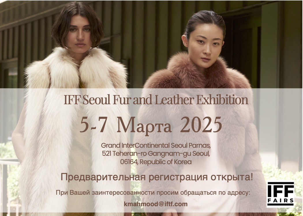 Информируем вас о том, что Российский пушной-меховой союз (РПМС) сотрудничает с Международной меховой федерацией (IFF) по выставкам. Это партнерство дает эксклюзивную возможность российским компаниям принять участие в престижной выставке меха и кожи IFF в Сеуле, которая пройдет с 5 по 7 марта 2025 года.