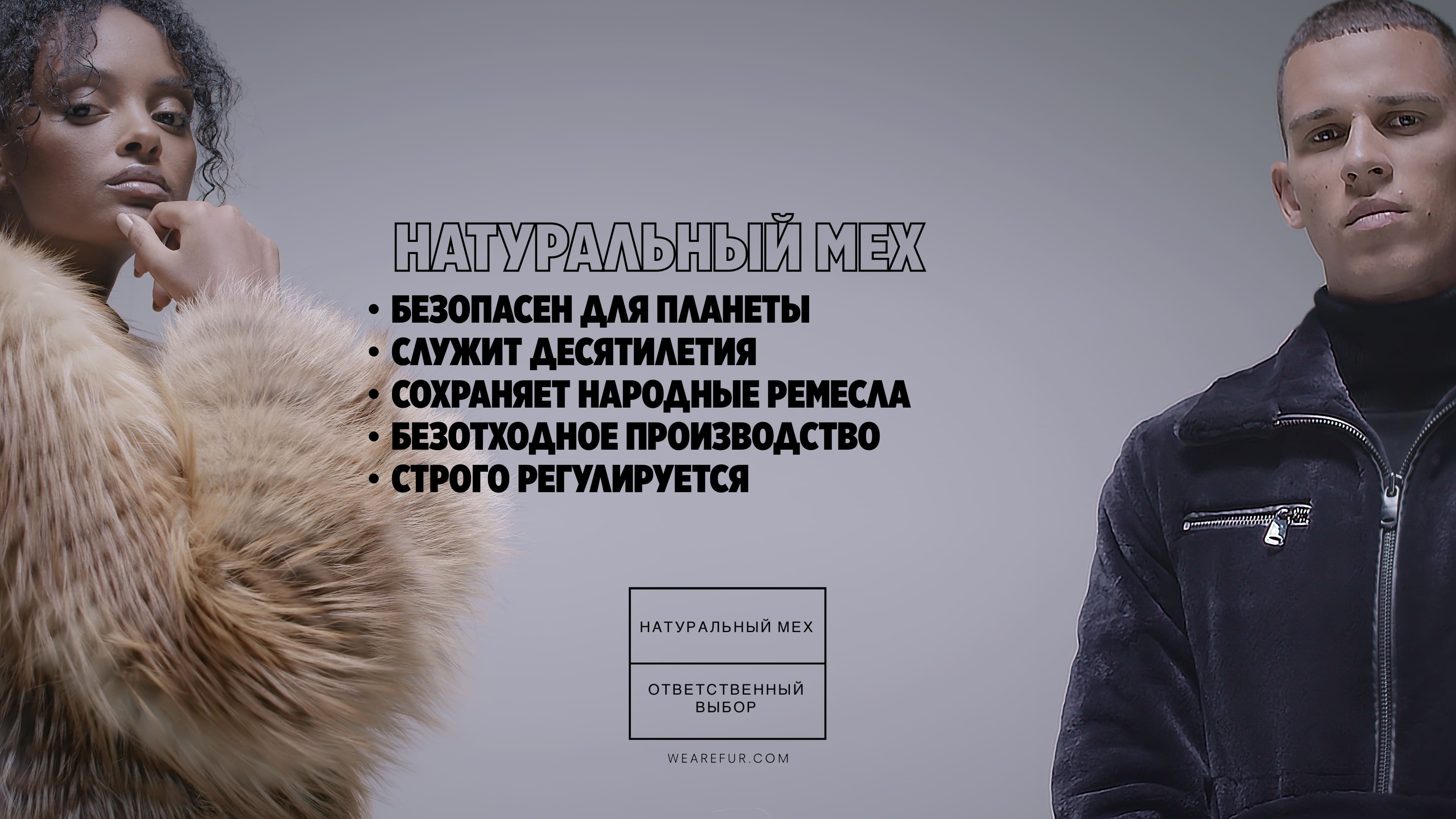 Кампания дает ответы на все эти вопросы в легкой, современной и наглядной форме, переворачивая заблуждение и предлагая противоядие. В конце видеоролика приводится список из 5 положительных аргументов, объясняющих, почему натуральный мех является правильным экологичным выбором.