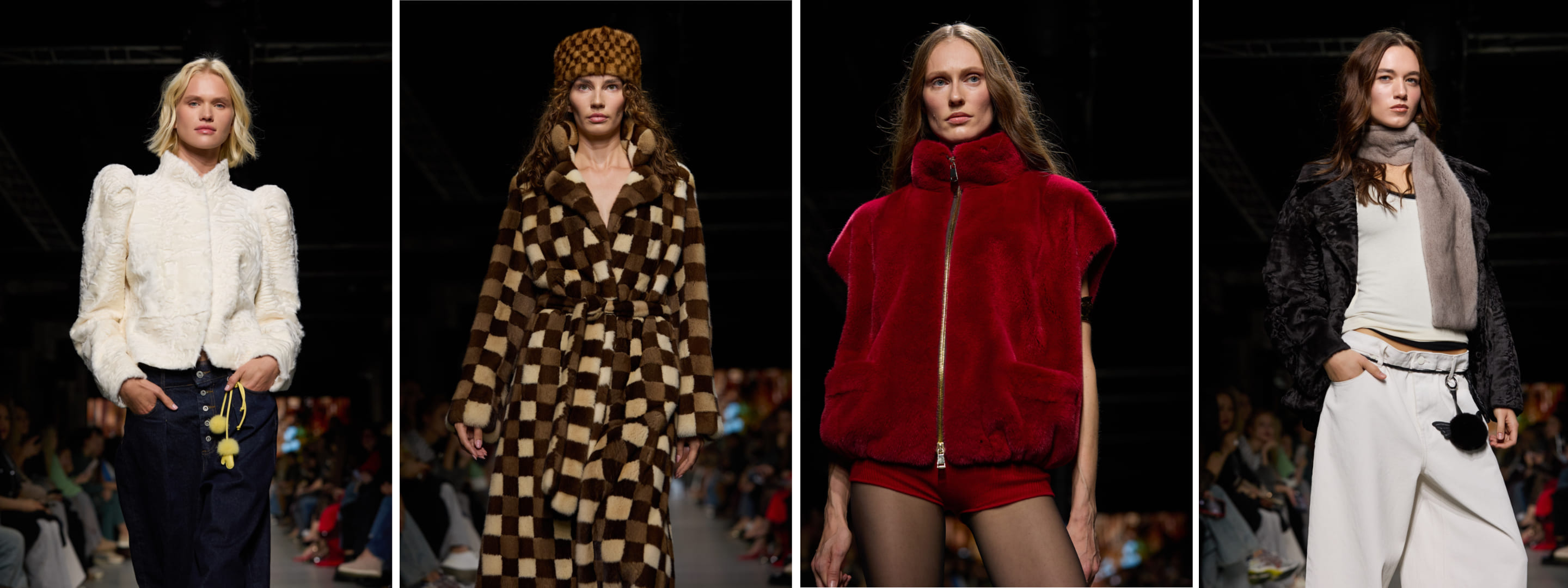 Фасоны лаконичные и практичные: укороченные жилеты, свободные норковые пальто, строгие жакеты из свакары. Все изделия легко вписываются в повседневный гардероб.