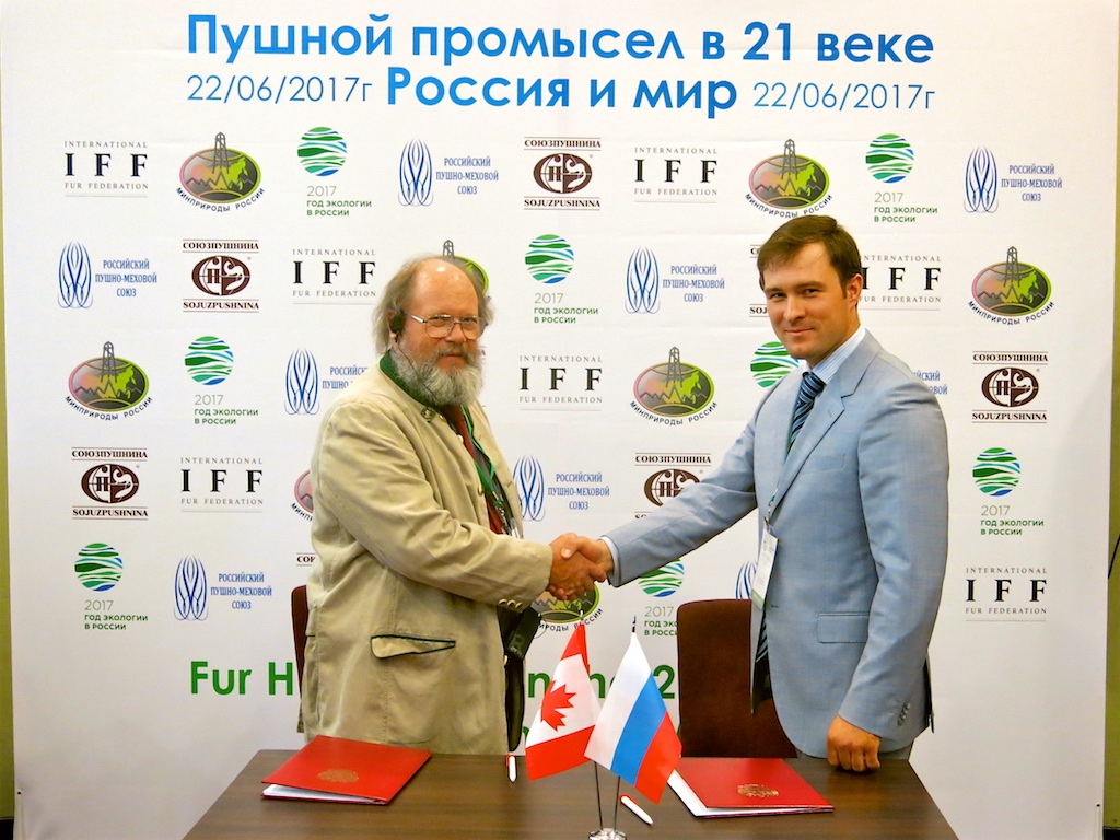 По итогам конференции состоялось торжественное подписание Меморандума о взаимопонимании между Пушным Институтом Канады и Федеральным государственным бюджетным учреждением «Контрольный информационно-аналитический центр охотничьих животных и среды их обитания» Министерства природных ресурсов и экологии Российской Федерации.