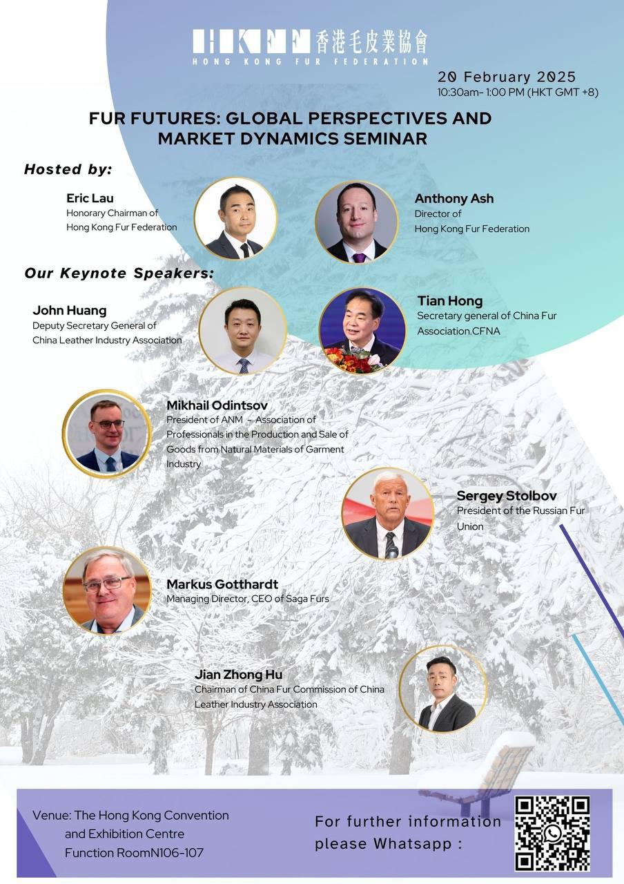 20 февраля (чт) 2025 г. в рамках деловой программы международной меховой выставки в Гонконге Президент РПМС Сергей Столбов примет участие в семинаре на тему "Глобальные перспективы и динамика рынка натурального меха", на котором будут обсуждаться вопросы текущего состояния и перспектив развития глобальной пушно-меховой индустрии.