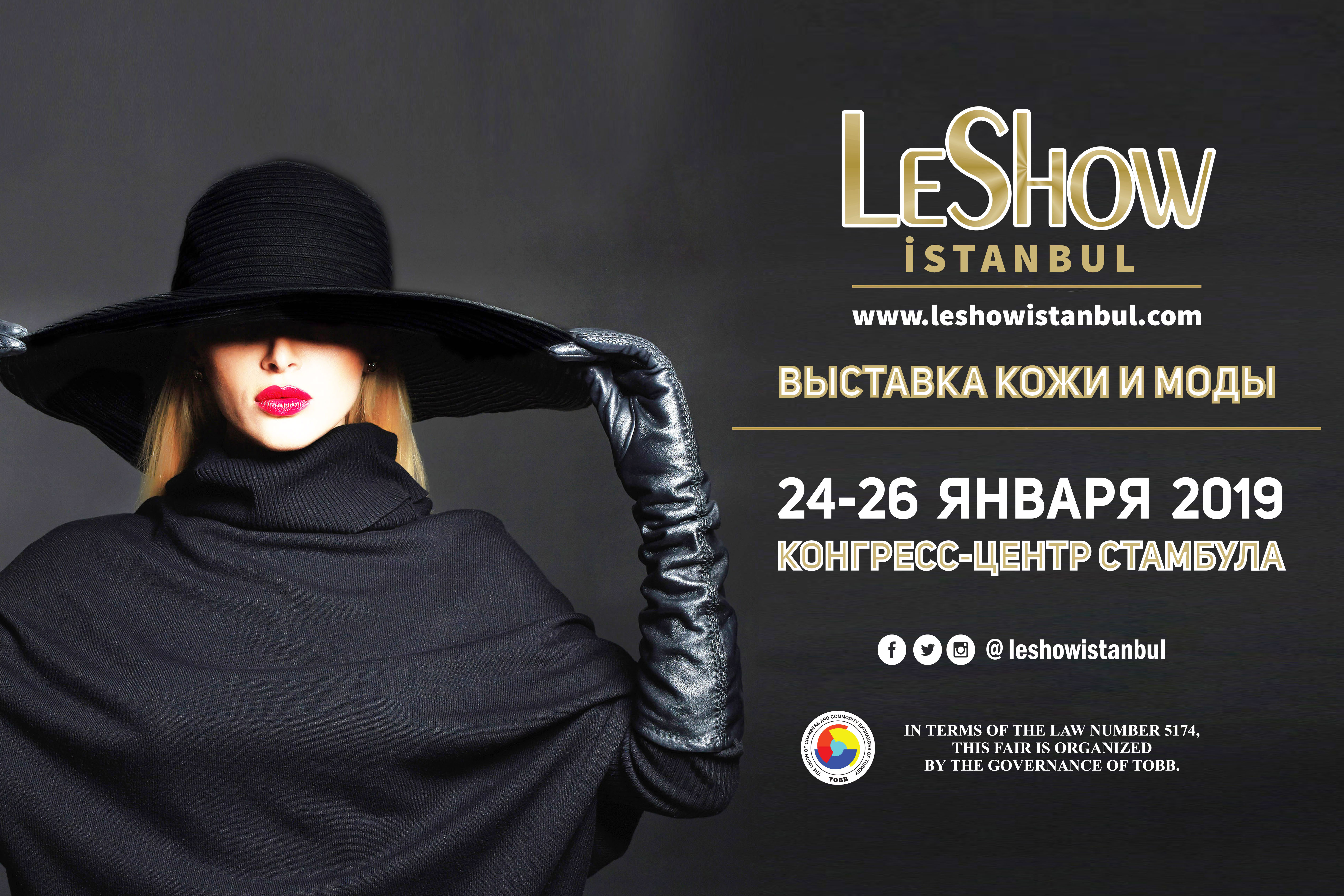 Информируем вас о проведении первой крупномасштабной профессиональной выставки Кожи, Меха и Модной верхней одежды - LeShow Стамбул – 2019, которая пройдет с 24 – по 26 января 2019 года, в Конгресс Центре г. Стамбул, Турция.