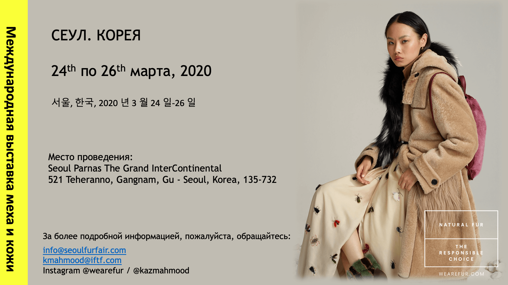 С 24 по 26 марта 2020 года сотни лидеров бизнеса и моды из мира меха и кожи приедут в Сеул, Корея, на три дня для развития бизнеса.
