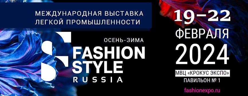 С 19 по 22 февраля 2024г. в Москве, в МВЦ «Крокус Экспо», пройдёт Международная выставка FASHION STYLE RUSSIA, объединяющая в себе все сегменты легкой промышленности, включая модную одежду, обувь и аксессуары, меховые изделия, кожу и комплектующие. Выставка предназначена для специалистов в сфере производства, импорта и ритейла товаров легкой промышленности.