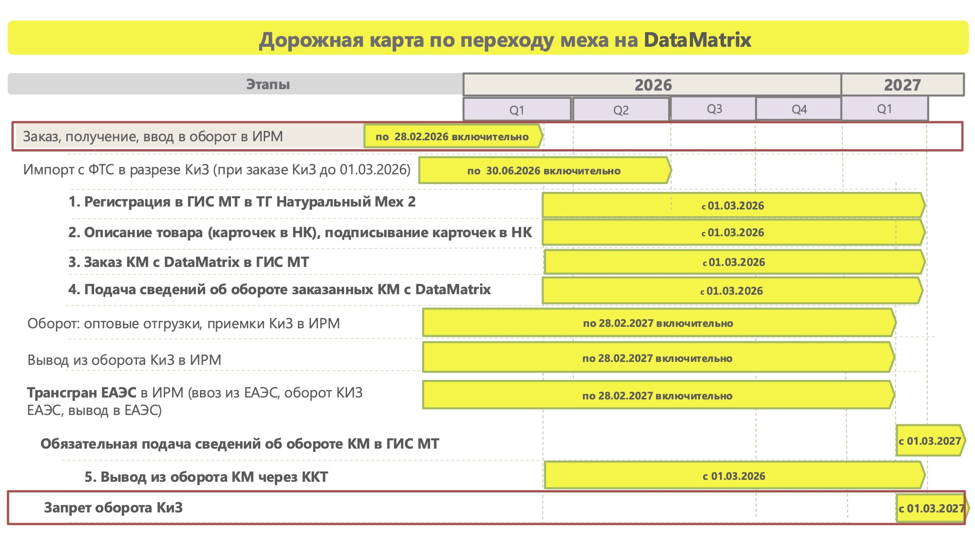 ЕЭК также объявила о планах по постепенному переходу на использование более современной технологии DataMatrix для маркировки меховых изделий. До 28 февраля 2026 года включительно, такие изделия смогут маркироваться RFID-метками, после чего будет внедрена новая система.